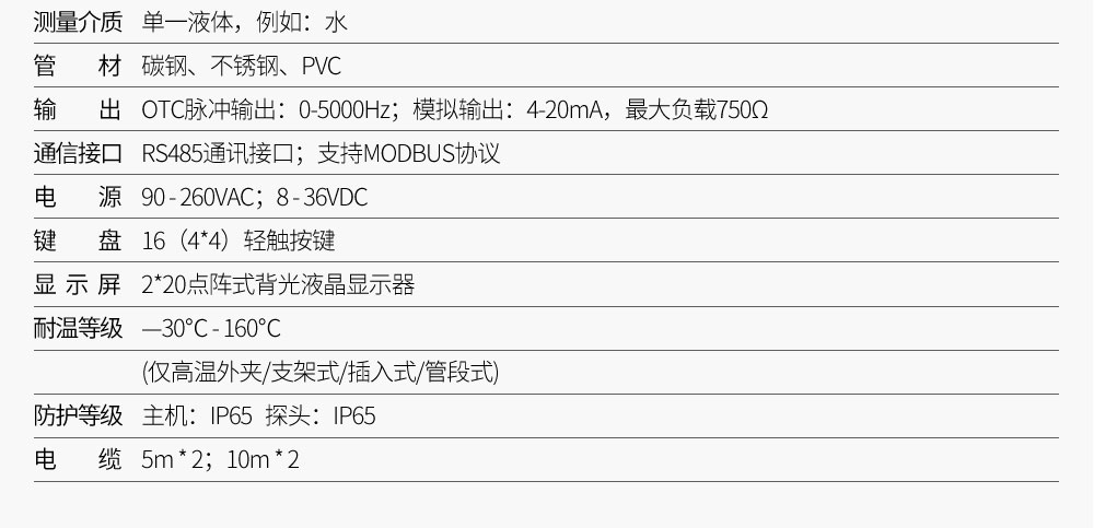 簡要描述:外夾壁掛式超聲波流量計利用了低電壓,多脈沖時差原理,采用高精度和超穩定的雙平衡信號差分發射、差分接收數字檢測技術來測量順流和逆流方向的聲波傳輸時間,根據時差計算出流速。具有穩定性好、零點漂移小、測量精度高,量程比寬抗干擾性強等特點。