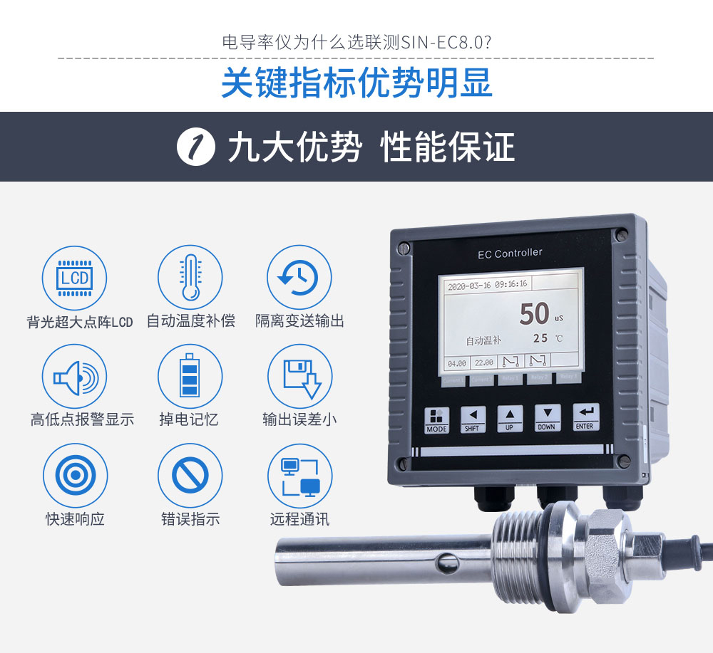 簡要描述:儀器用于工業上電導/比電阻/鹽度/溶解固體總量及溫度的測量,如: 廢水,純凈水,高純水,環境監測,食品生產過程等,儀器可以盤面安 裝,壁掛安裝,管路安裝。儀器提供 2 路電流輸出,最大負載為 500Ω, 儀器提供 3 路控制用繼電器,繼電器最大承受電壓及電流為 5A/250VAC 或 5A/30VDC。