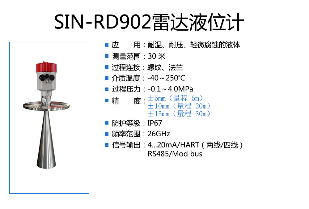 當(dāng)前位置:首頁 > 雷達(dá)液位計(jì) > 聯(lián)測(cè)_SIN-RD902雷達(dá)液位計(jì)_適用于高溫高壓的液體_