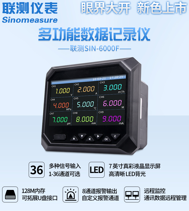當前位置:首頁 > 無紙記錄儀 > 聯測_SIN-R6000F_新款無紙記錄儀144*144_全新36萬能通道