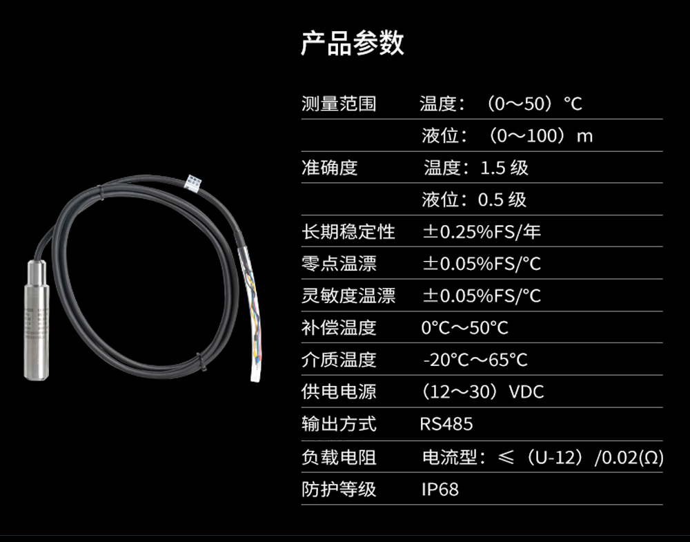 簡要描述:溫液一體變送器應用于工業領域流體的深度測量, 可將被測深度參數值轉換成RS485 標準信號,可與多種儀表相配套,可廣泛用于交通運輸、 石油、化工、冶金、輕工等領域。
