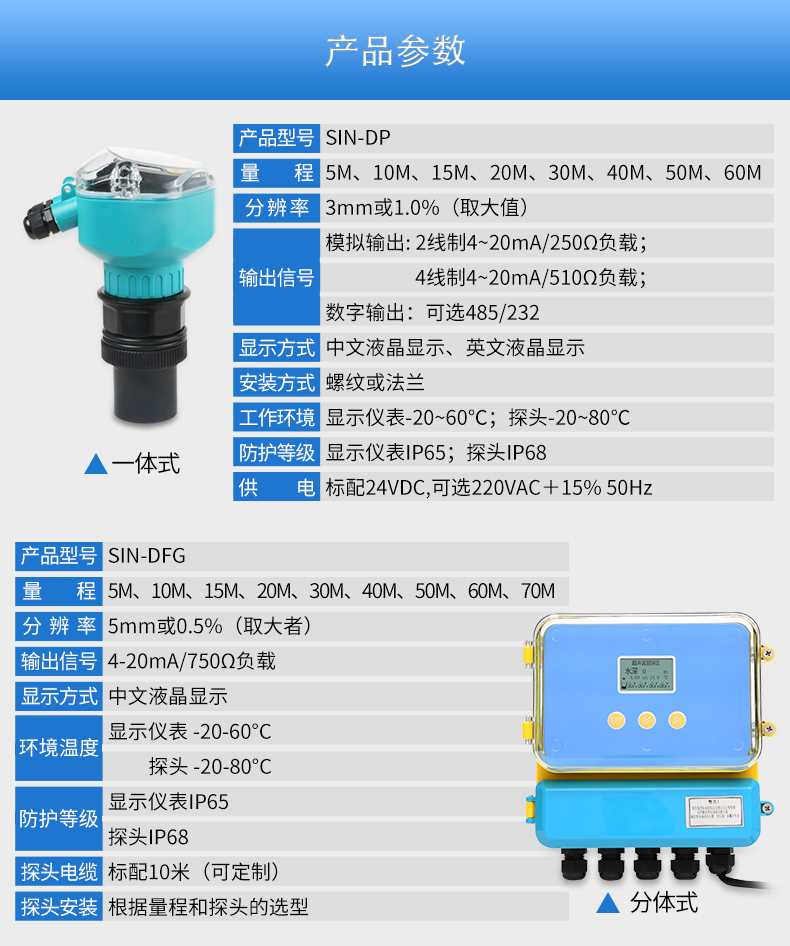 當前位置:首頁 > 超聲波液位計 > 聯(lián)測_SIN-DFG_基礎款_分體式超聲波液位計/物位計/水位儀 污水 料位液位測量_